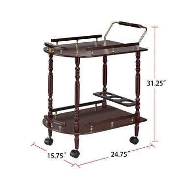 - Merlot finish and brass accents call attention to the historical nature of this serving cart