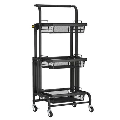 This three-layer folding cart optimizes your storage space with a 180 foldable design. It is a good helper for family storage. It can be placed in the kitchen, living room, office, bathroom, bedroom, hot pot restaurant. It is constructed of high-quality carbon steel and iron, making it sturdy and durable. 4 360 free rotating pulleys + handle design, allowing you to roll anywhere easily; easy to assemble, equipped with installation tools, can be assembled in 15 minutes.