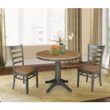 Create extra space when needed in your kitchen or dining room with this extension dining table set from International Concepts. This versatile table set is crafted from solid wood and is part of a high-quality collection of wood furniture that will easily complement any dcor. Parawood – a hardwood known for its durable, strong, and environmentally friendly nature – is used to craft these traditional tables. The table easily pulls apart on metal glides allowing you to insert the 12-inch leaf, adding to your dining space and accommodating additional guests. This set of chairs from the International Concepts seating collection completes the look and creates the perfect dining experience! Whether you are enjoying a cup of coffee, a daily lunch, or a Sunday dinner, you will have this extension table set to appreciate for years to come.
