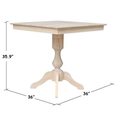 - Counter height table includes one 6″ pedestal base extension to convert table to counter height