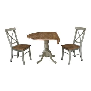 - 3 piece set, consisting of 1 dual drop-leaf table and 2 chairs