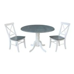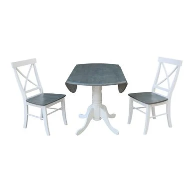 - 3 piece set, consisting of 1 dual drop-leaf table and 2 chairs