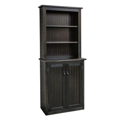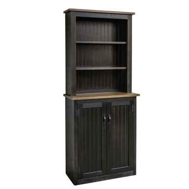 72-inch Tall Lodge Style China Cabinet With 3 Display Shelves And 2 Doors – White & Espresso Top