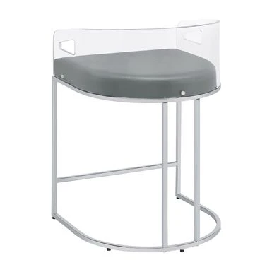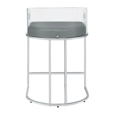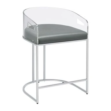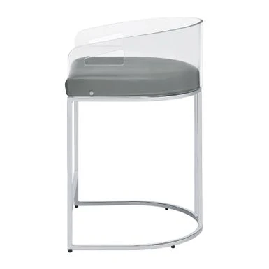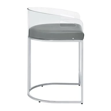 Ultra-modern with a retro-inspired vibe, this pair of stools make a striking piece to a dining room space. With a curved backrest in a clear acrylic material, each stool offers an open and airy design. Rest comfortably on a leatherette cushion as you dine or sip a cocktail. In addition, each stool is supported by a slim metal legs in a lustrous chrome finish and a base shape that mimics the rounded acrylic backrest. Pull up a pair of these stools to a kitchen bar or complete a compact home bar.