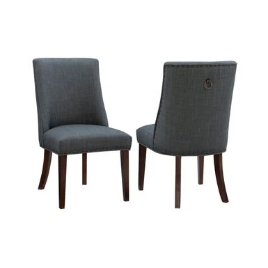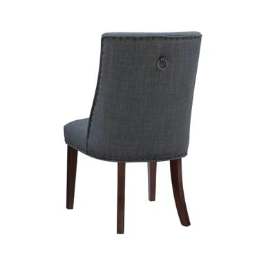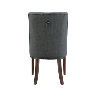 - Features antiqued bronze nailhead trimming and a matching chair back ring pull