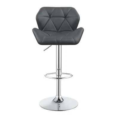 With easy adjustability and sleek, understated style, this gorgeous grey bar stool adds versatile glamour anywhere you choose to dine. Its sturdy metal base has a beautiful chrome finish and includes a round foot pedestal for added comfort. With neutral coloring and a transitional design, it complements a wide variety of decor styles and color motifs. Its height can be adjusted to fit at a bar, table, or counter for a vast array of placement options. With seemingly endless versatility, this stylish stool is ideal for dining areas of all kinds.