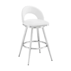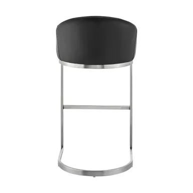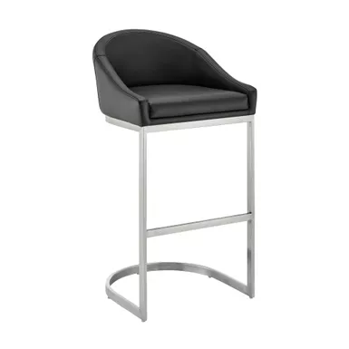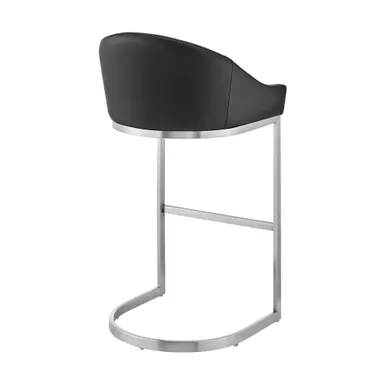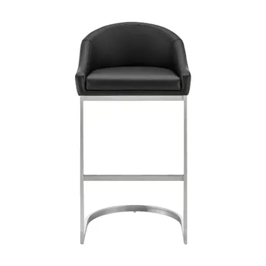 Give a chic and stylish update to your home or apartment with the Atherik Stool in Faux Leather and Metal by Armen Living. This kitchen barstool incorporates a barrel style seat with a striking L-shaped cantilever base to achieve a minimal design that keeps the chair aloft, offers outstanding support, and delivers a contemporary silhouette. This metal bar stool is upholstered in faux leather. Faux leather does not crack easily and is stain resistant, does not fade easily and is also UV resistant. This modern bar stool is ideal for your kitchen island, pub table, home bar, or adjustable desk. Use universally in your home from your kitchen to your home office and allow its versatility to shine.