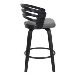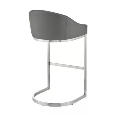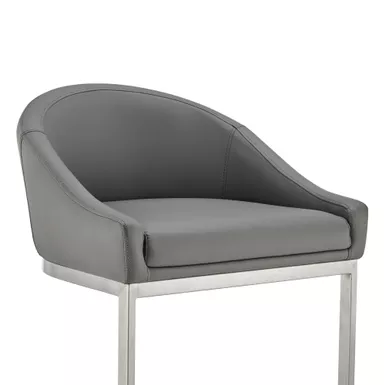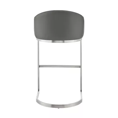 Give a chic and stylish update to your home or apartment with the Atherik Stool in Faux Leather and Metal by Armen Living. This kitchen barstool incorporates a barrel style seat with a striking L-shaped cantilever base to achieve a minimal design that keeps the chair aloft, offers outstanding support, and delivers a contemporary silhouette. This metal bar stool is upholstered in faux leather. Faux leather does not crack easily and is stain resistant, does not fade easily and is also UV resistant. This modern bar stool is ideal for your kitchen island, pub table, home bar, or adjustable desk. Use universally in your home from your kitchen to your home office and allow its versatility to shine.