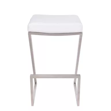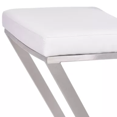 The Armen Living Atlantis 26″ Counter Backless White Faux Leather and Brushed Stainless Steel Bar Stool is the perfect addition to any home! The unique Z-shaped metal base is not only a stylish design feature but also provides optimal support to the upholstered seat. This kitchen counter stool easily tucks away under your peninsula, kitchen island, or home bar and effortlessly incorporates into any house regardless of style theme. The soft faux leather upholstery is wrapped around a high-density foam cushion that keeps you or your guests comfortably seated. The armless design also for easy movement and can be moved as close as needed when using with a working surface.
