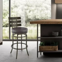 Mynette 30″ Swivel Brown Faux Leather Bar Stool