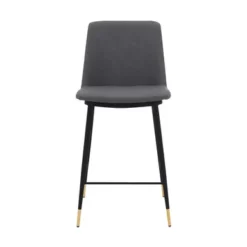 Nara 26″ Gray Faux Leather And Metal Counter Height Bar Stool With Black Frame