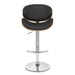 Naples Black Faux Leather Adjustable Height Swivel Walnut Wood And Chrome Base Bar Stool