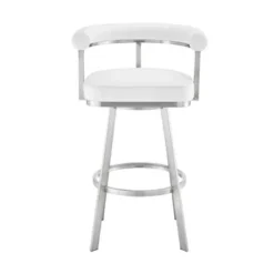 Madrid 26″ Counter Height Swivel White Faux Leather And Brushed Stainless Steel Bar Stool