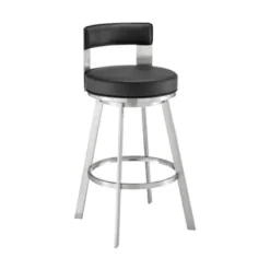 Lynof Swivel Counter Stool In Brushed Stainless Steel With Black Faux Leather