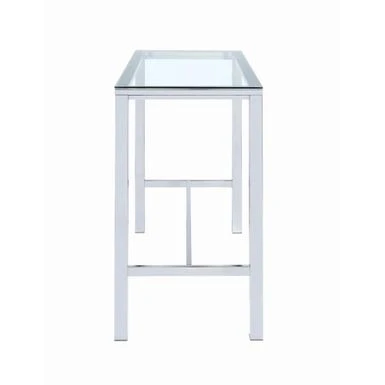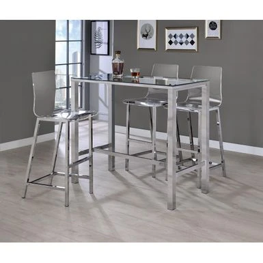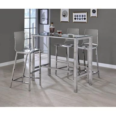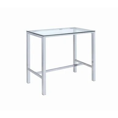 Add a flash of panache to your rec room or home bar with this modern bar table. Contemporarily designed with chrome legs and glass top. Crisp, clean lines cut an incisive silhouette. A martini with an olive or a classic old fashioned both deserve a bar table like this. Calculate your next investment or discuss your impending joint venture in style.
