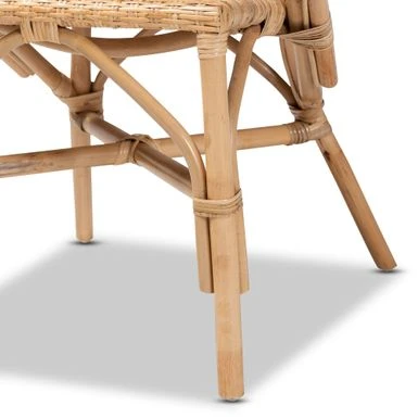 Generate a peaceful, gentle atmosphere for every meal with the natural character of the Varick dining chair. Made in Indonesia, this chair is comprised of a natural rattan frame featuring woven embellishments. The smooth curves of the backrest envelop around the chair to form convenient armrests. The Varick will arrive fully assembled and utilizes an angled seat for enhanced comfort. A superb blend of comfort and style, the Varick dining chair is sure to leave a lasting impression. This is a product of nature and may have variations in areas such as, but not limited to, color, pattern, grain and texture. The hair-like strands of rattan/rattan-fiber are common due to nature of the material. .