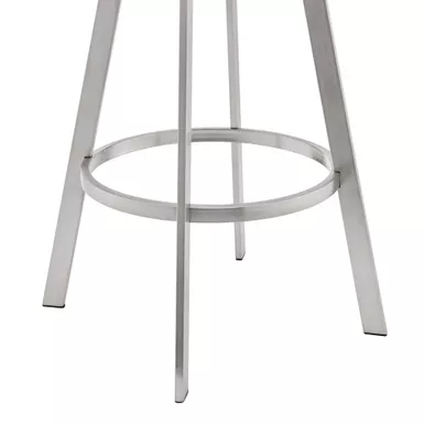 Bring the Bronson Swivel Bar Stool from Armen Living into your beautiful home! It is the best choice to bring in another seating option and does so without compromising on comfortability. The wonderful faux leather and stainless-steel accents give the Bronson a look of refinement, making you proud to show it off in your home. The foam-padded seat cushion offers you the most comfort available to you! This curved open-back stool will keep you relaxed while enjoying dinner with your friends and family. The Bronson also features a convenient metal footrest, for additional support and stability.