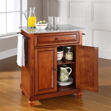 Cambridge Solid Granite Top Portable Kitchen Island In Classic Cherry Finish