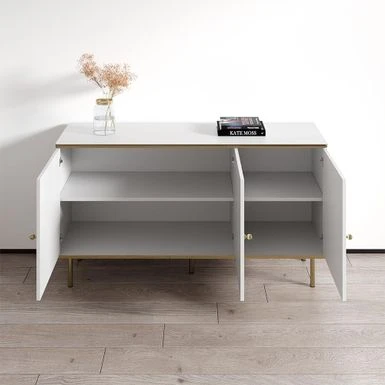 Introducing the Camelia 3D 54″ Sideboard – a modern and unique piece that will elevate your living room storage game. With its sleek matte fronts and body, this sideboard has a contemporary design that will impress your guests. Manufactured in and imported from the European Union, it is built with quality in mind. Measuring 29.5 inches in height, 54.3 inches in width, and 15.8 inches in depth, it provides ample storage space for your belongings.