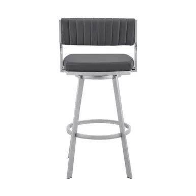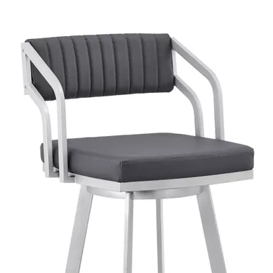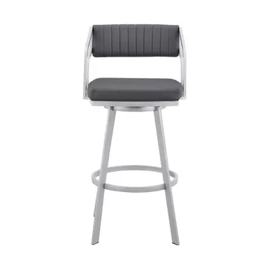 Add a modern furniture piece to your home with the Capri Swivel Modern Metal and Faux Leather Stool. The Capri is a unique design that will be sure to start conversations at all your gatherings. Pull the Capri up to your kitchen island, counter, peninsula, bar, or pub table with ease due to the unique low arm design that allows you to sit as closely to your desired surface as needed. The Capri’s modern style silhouette is perfectly complemented by its channel style stitching on the back piece. The back of the Capri’s open-lower back design allows for cool breathable seating. Enjoy full mobility with the 360-degree swivel function that keeps you fully engaged with guests on all sides of the room. The Capri Swivel Modern Metal and Faux Leather Bar Stool can support up to 250lbs per stool.