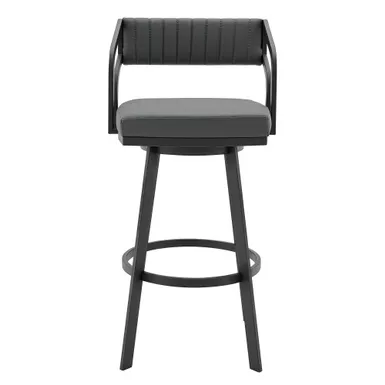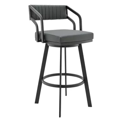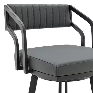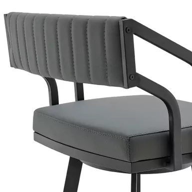 Add a modern furniture piece to your home with the Capri Swivel Modern Metal and Faux Leather Stool. The Capri is a unique design that will be sure to start conversations at all your gatherings. Pull the Capri up to your kitchen island, counter, peninsula, bar, or pub table with ease due to the unique low arm design that allows you to sit as closely to your desired surface as needed. The Capri modern style silhouette is perfectly complemented by its channel style stitching on the back piece, the back of the Capri’s open-lower back design allows for cool breathable seating. Enjoy full mobility with the 360-degree swivel function that keeps you fully engaged with guests on all sides of the room.