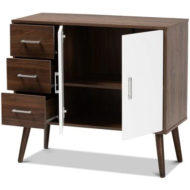 - Two-tone white and walnut brown finish