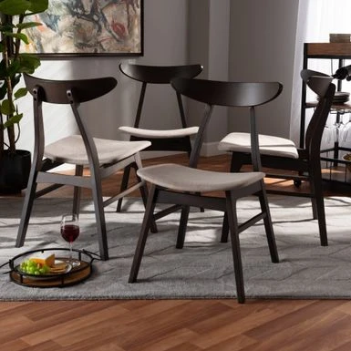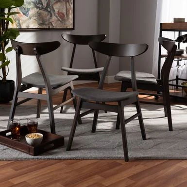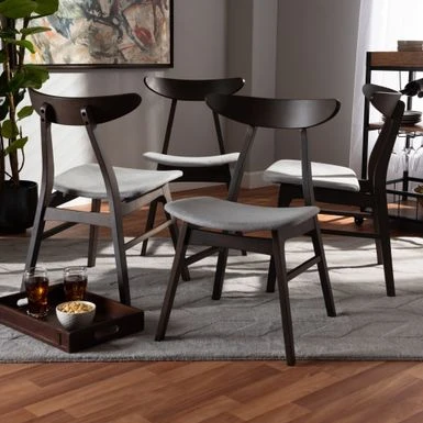 Put a Scandinavian spin on your dining room with this 4-piece dining chair set. This set includes four mid-century dining chairs and is made with polyester fabric, rubberwood and foam. Available in dark grey, light grey, or beige, these chairs are upholstered in a polyester fabric and padded with foam sure to redefine your space.