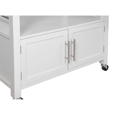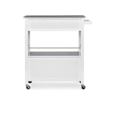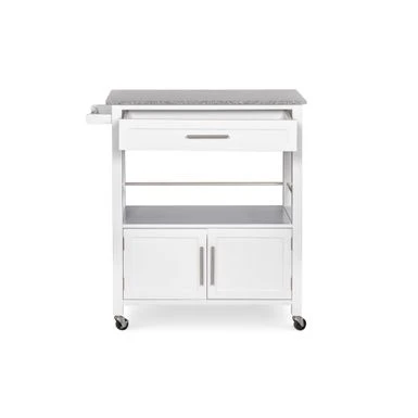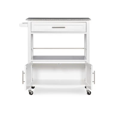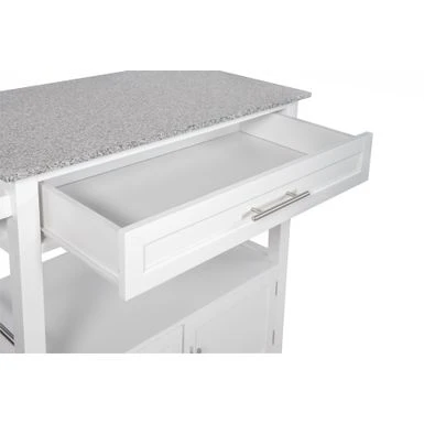 - Ample storage space in a single drawer, shelf and 2-door cabinet area.