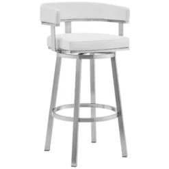 The unique style of the Cohen Swivel Bar Stool from Armen Living is unmatched; whether it is the aesthetic or quality, it is hard to find a stool as wonderful as this. The contemporary round silhouette is unlike most bar stools and includes a wide, open-lower back design for cool breathable seating. The Cohen Bar Stool can easily transition from your kitchen to your dining room, to your dining room to the living room, the versatile look makes these possibilities endless. The Cohen features a thick foam-padded cushion that will keep you relaxed until you are ready to get up!