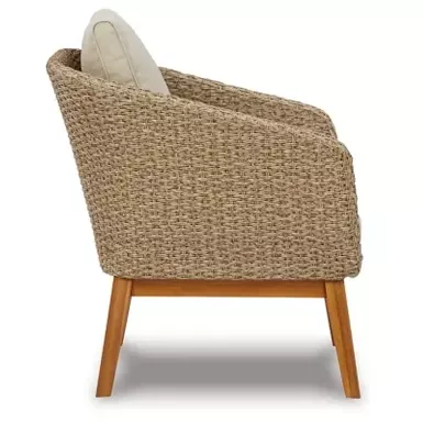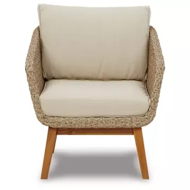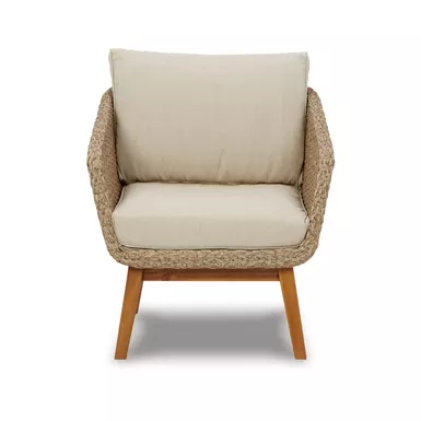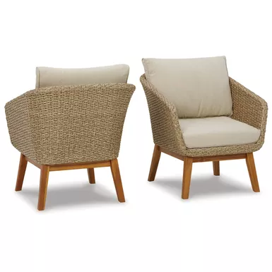 Turn your outdoor space into a high-style hideaway with the Crystal Cave 2-piece outdoor lounge chair set. Clearly for those with an eye for fine design, this sleek, chic outdoor furniture set is quality made to withstand the elements. What looks like traditional wicker is the next best thing: resin wicker woven over rust-proof aluminum for exceptional durability and worry-free living. Acacia wood legs and easy-breezy Nuvella®/olefin wrapped cushions enhance its appeal.