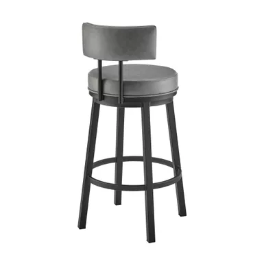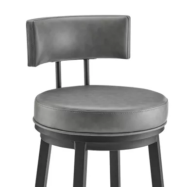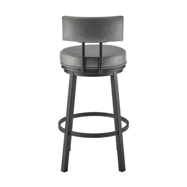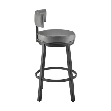 Embrace the modern and functional appeal of the Dalza Swivel stool in Faux Leather and Metal by Armen Living. The bar stool features a padded and streamlined back, resting upon 4-sturdy legs to serve as modern and comfy addition to your home. Its generously padded back and seat are topped with nearly tailored faux leather upholstery. Faux leather does not crack or fade easily; it is stain-resistant and UV resistant to serve you for years to come. Compliment any bar, high dining area, or adjustable desk with the elegance and charm of our metal bar stool. Crafted with quality and comfort in mind, the barstool can be used anywhere from the kitchen and living area to your workspace. A wonderful full 360-degree swivel function allows for maximum mobility. The smooth glide swivel function allows you to change directions with ease to become your new favorite seat.
