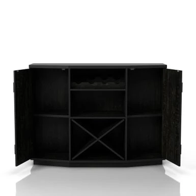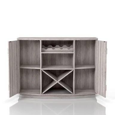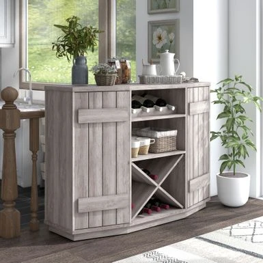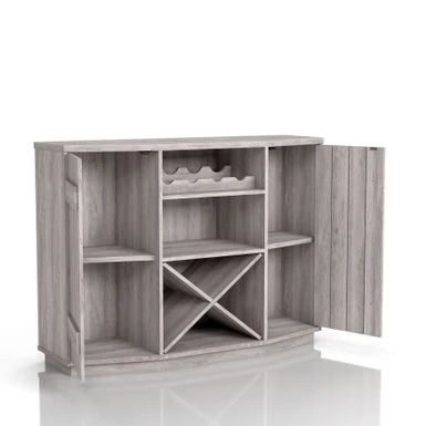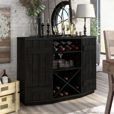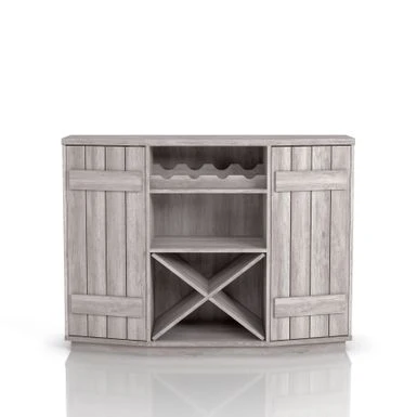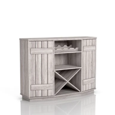Add rustic charm to your farmhouse dining room with the DH BASIC Farmhouse Plank-Style 28-Bottle 47-Inch Wine Cabinet Buffet by Denhour. Crafted from MDF and featuring plank-style cabinet doors, this wine cabinet buffet comes with an X-rack that can store up to 24 wine bottles. The frame is finished in either Coastal White or Reclaimed Black Oak, making it a versatile addition to your decor. With four wine bottle slots and five total shelves, including two adjustable interior shelves, you can easily present your best bottles while storing the rest of your collection.