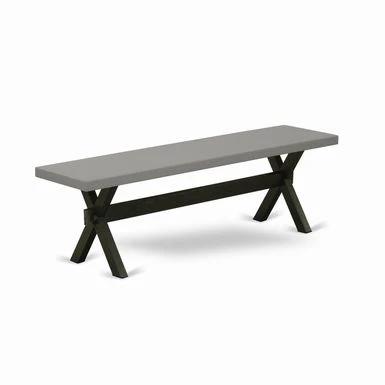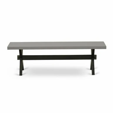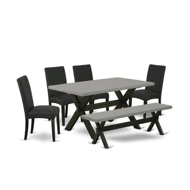 East West Furniture 6-Pc Modern Dining Set- 4 Mid Century Dining Chairs with Black Linen Fabric Seat and Stylish Chair Back – Rectangular Top & Wooden Cross Legs Wood Kitchen Table and Bench – Cement and Black Finish