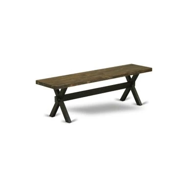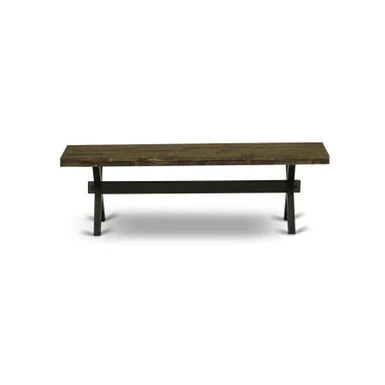 East West Furniture X676MZ606-6 6 Piece Dining Room Table Set – A Distressed Jacobean Top Dining Table with a Mid Century Bench and 4 Shitake Linen Fabric Parson Chairs – Wire Brushed Black Finish