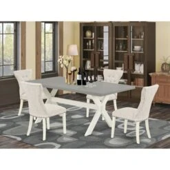 This dinette set includes a mid-century dining table with dining chairs to make your friends and family meals easier and pleasant. The structure of this mid-century dining set is created of top quality Asian wood, which offers fantastic strength and stability. The kitchen chairs are slightly and stylishly curved, expertly finished with the help of highly experienced carpenters. These dining chairs seat offers linen fabric that is smooth and has robust spring elasticity, offering the best comfortable contact experience. The seat of the mid century dining chairs is wide enough to make your seating comfort. Linen Fabric parson chairs add stylish intrigue to your dining room. This dining set stands on a sturdy hardwood frame with solid legs and a contemporary Wire Brushed Black finish. The dining table set has a rectangular Distressed Jacobean tabletop with X-Style Legs. The matching color of the padded wood dining chairs with the rectangular dining table brings an excellent contrast in any dining area. This beautiful dining room set is easy to clean with a damp towel and will always provide fresh appeal. The significance mentioned is that the installation process of our magnificent mid-century dining set is not difficult and easy to operate. Each set comes conveniently flat packed with easy to follow instructions and all necessary equipment included. You only need to follow the steps in the manual to complete the assembly in a short time. You’ll love our modern dining table set quality, style, and affordability!