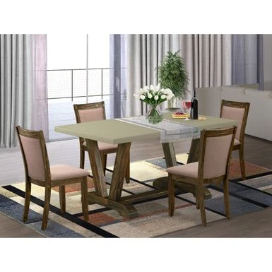 East West Furniture 5-Pc Dining Room Table Set – 4 Dining Chairs and 1 Modern Dining Table – Distressed Jacobean Finish