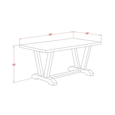 - Dining Table Dimensions are: Length: 60; Width: 36; Height: 30