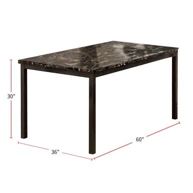 Tall sleek structure accented with a glossy faux marble table top that perfectly shows off the intricate marble tones. The rectangle dining table completes with spacious room for four. Tall sleek structure accented with a glossy faux marble table top that perfectly shows off the intricate marble tones. The rectangle dining table completes with spacious room for four. Easy to clean, simply use water and a non-abrasive cloth to wipe down when needed.