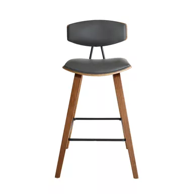 Whether drawn up to a sleek kitchen island for a breakfast nook or rounding out your home bar with a perfect perch, a bar stool like this is a versatile seating solution with sleek modern style. The Armen Living Fox 28.5″ Bar Grey Faux Leather and Walnut Wood Mid-Century Modern Bar Stool is a sophisticated and functional modern piece certain to enhance the aesthetic of any style home or apartment. The high-density foam cushioned back, and seat will allow endless hours of entertaining or lounging. The curved wood medium high back with padded support is ideal for posture alignment and an unmatched support for days on end. The foundation of the product is supported by wood and steel footrest for a chic and stylish aesthetic without comprising practicality and functionality of this item. The Mid-Century Modern style silhouette gives you a timeless look with the durability to last for many years to come.