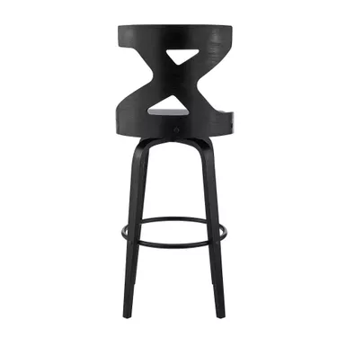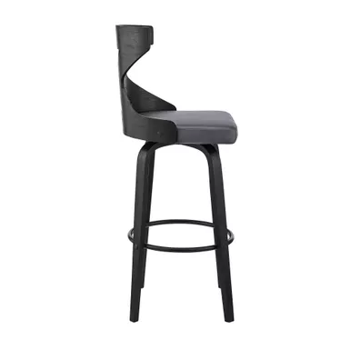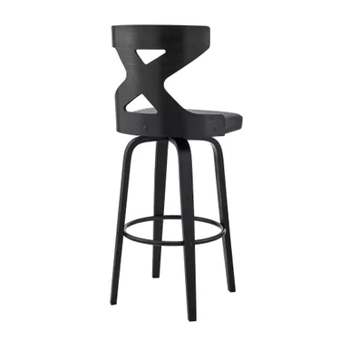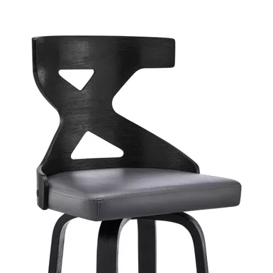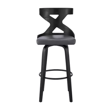 The Gayle 26″ Swivel Cross Back Gray Faux Leather and Black Wood Bar Stool is an ideal addition to any home or apartment. The unique X design on the back serves as a beautiful aesthetic and provides lumbar support. The soft faux leather upholstery is wrapped around a high-density foam cushion that will allow for extended seating periods and provide comfort as well as making clean up a breeze! This stool features a full 360-degree swivel function that allows full mobility where you to interact with your guests and family regardless of your position in the room! The mid-century modern style silhouette of this stool creates a timeless look that will last for many years to come. The Gayle is an armless bar stool that makes it easy for you to pull the stool up to your kitchen island, pub table, or peninsula counter.