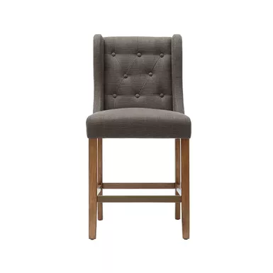 This beautiful button-tufted counter stool is upholstered in a beautiful woven fabric that coordinates perfectly with several different decor styles. Assembly required.