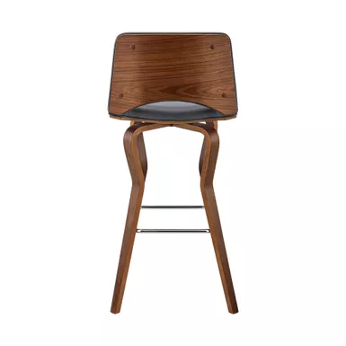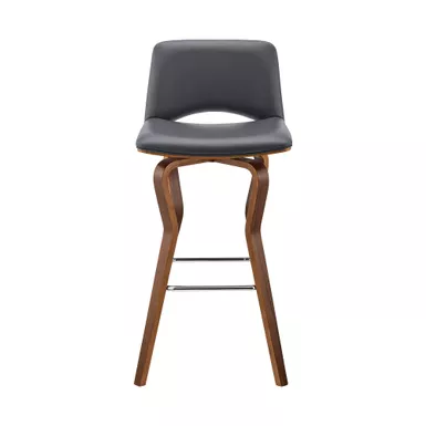 Gather your family and friends and seat them in the Gerty 26″ Swivel Gray Faux Leather and Walnut Wood Bar Stool from Armen Living. This wonderful bar stool is crafted to be breathable, with its slotted back, as well as functional, with the 360-degree swivel function for full mobility. The faux-leather upholstery is soft, yet durable – covering the soft foam-padded seat and back, giving you the look, feel, and longevity you have always been looking for. The legs are crafted to be durable sturdy, doing all the work for you by maintaining themselves for many years to come. The armless design of the Gerty allows you to easily pull this stool up to your kitchen island, home bar, or peninsula counter. The Gerty also features a metal footrest for extra comfortability.