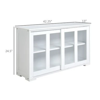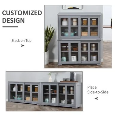 HOMCOM Modern Kitchen Sideboard, Stackable Storage Cabinet, Sliding Glass Door Console, Cupboard Serving Buffet For Kitchen – Black