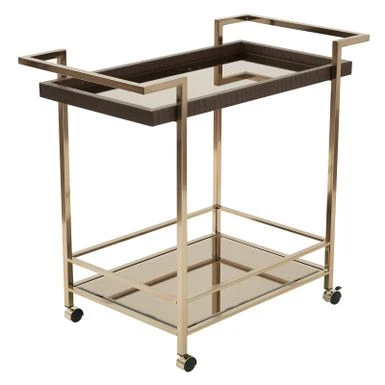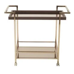 Create an elegant display for your wine with this stylish cart. Crafted with a Champagne metal finish and glass top, this durable wine cart adds beauty to your home. Four casters on the bottom give you the freedom to easily move your drinks from room to room.