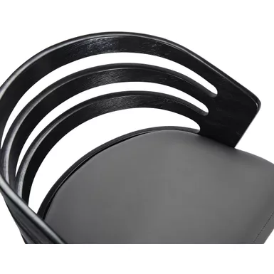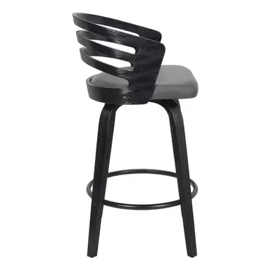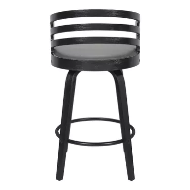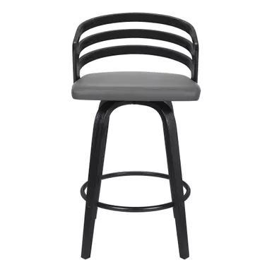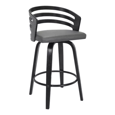 The Jayden 30″ Bar Swivel Grey Faux Leather and Black Wood Bar Stool from Armen Living adds a touch of mid-century modern appeal to any home and fits in regardless of existing design theme. The rounded seat back features ergonomic properties to keep your back healthy and properly aligned and serves as a beautiful design feature. The plush seat cushion is constructed from high-density foam and wrapped in luxurious faux leather upholstery that is stylish and durable, allowing for easy clean up. The Jayden bar stool easily pulls up to your kitchen island, peninsula counter, or home bar and the 360-degree swivel function helps you easily engage with your friends and family regardless of their place in the room. The metal ring footrest gives you an added point of convenience and allows for comfortable seating for hours on end. Although the flared bentwood legs and silhouette are reminiscent of mid-century modern times, the Jayden kitchen stool is a timeless piece that will last for many years to come.
