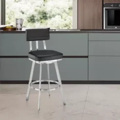 The Jinab bar stool collection has multiple color and finish variations to fit your design theme. The metal and faux leather construction creates a durable and easily maintained solution to your everyday needs. This bar stool is ideal for your kitchen island, pub table, home bar, or adjustable desk. Use universally in your home from your kitchen to your home office and allow its versatility to shine. This metal bar stool is upholstered in faux leather upholstery. Faux leather does not crack easily and is stain resistant, does not fade easily and is also UV resistant. The wonderful full 360-degree swivel function allows for maximum mobility. The smooth glide swivel function allows you to change directions with ease, making this your new favorite seat in your home. This swivel bar stool easily incorporates into any home.
