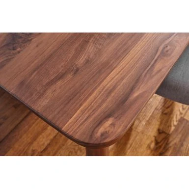 Create a mid-century vibe in your dining area with this lovely walnut dining table from the Kirkwood Collection. The table is crafted from solid and veneered american walnut and will withstand the test of time.Â
