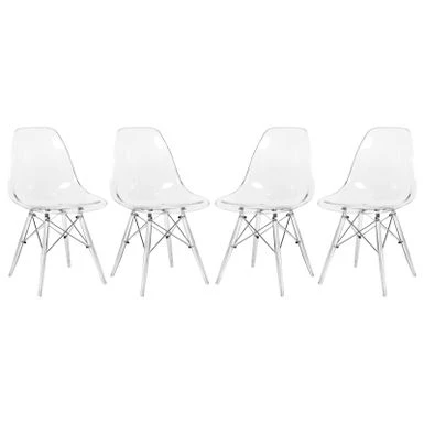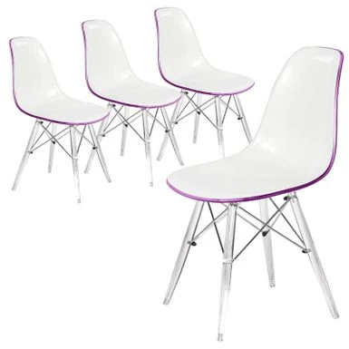 Bright and playful, the retro simplicity of these classic accent chairs will also instantly enhance the modernity of your room. Each of these contemporary accent chairs is made from durable matte-finish molded Plastic. The amazing thing about the Dover Side Chair is its versatility: however you use the chair, it is sure to suit your needs. One moment its a hard-working, practical kitchen chair, and the next viola! It becomes a sophisticated counterpart to your elegantly decorated, candlelit dining table. The secret to this adaptability is smart modern design: clean lines, graceful structure and durability.