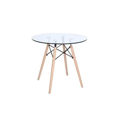 Introduce a modern touch to your dining area with the LeisureMod Dover Round Top Bistro Dining Table. The clear, round tempered glass top is screwed tightly to the sleek chrome plated black steel Eiffel base for stability. The high-quality beech wood dowel legs in a sustainable finish and floor protectors prevent scratching. This lightweight and easy to clean table is perfect for any casual contemporary or traditional dΓ©cor.