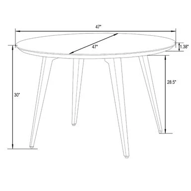 - Dimensions: 30″ H x 47″ W x 47″ D, Leg Height 28.5″, Top Thickness 1.38″